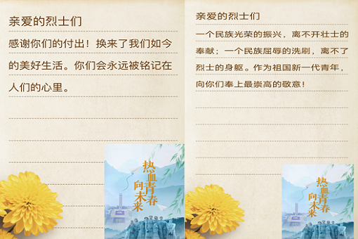 活动期间,团支部进行了线上主题团课学习,班委带领支部团员了解了清明节的由来和传统习俗,回顾了革命先烈的英勇事迹,致敬当下为脱贫攻坚和抗击疫情付出血泪和生命的时代英雄。主题学习结束后,同学们通过“中国雨花台”公众号线上参观了雨花台烈士纪念馆,更加直观的学习了先烈们的革命事迹,并进行了线上祭扫与留言,表达了对英烈的崇高敬意和未来的美好展望。
