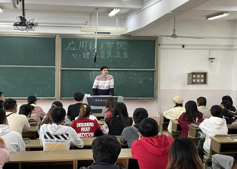 11月3日下午,应用技术学院在滨江楼N401教室开展“心心相印,阳光前行”心理委员交流会,参加本次会议的有学院心理工作负责人李俊言老师,院学生会生活发展中心全体成员及各班级心理委员。