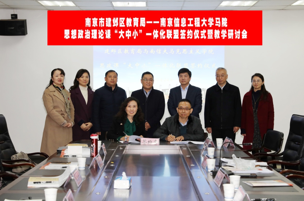 为发挥校地双方优势,深入落实《关于深化新时代学校思想政治理论课改革创新的若干意见》的精神,统筹推进“大中小”思政课一体化建设,南信大马克思主义学院与建邺区教育局经充分协商,决定共建思政课“大中小”一体化联盟。