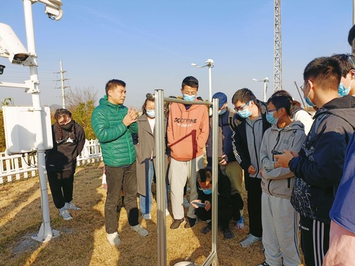 初冬时节,阳光明媚。为进一步加强2021级气象技术与工程新生对气象观测的认识,提高对本专业兴趣,巩固课堂所学知识,11月27日下午,大气物理学院大气探测系主任郜海阳老师带领本专业共60名学生前往南京国家基准气候站参观学习。