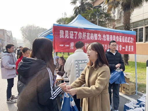 2022年全国研究生入学考试在即,为帮助大四即将考研的同学缓解压力、提升信心,12月10日,大气院在中苑开展了“研途送温暖,助力考研梦”的考研助力送温暖活动。大气院党委副书记、副院长张皓及学院全体辅导员参与本次活动,为考研学子亲手送上鼓励与祝福。