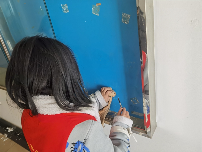 同学们分为两组,分别开展了“美丽河岸”与“换新空间”两项活动。“美丽河岸”的小组沿着南信大群英河,认真地清理杂物,不放过任何一个角落,拾捡来的垃圾也做好了分类处理,半天的劳动换来了群英河岸更美的风景。与此同时,“换新空间”小组前往学院办公区进行清理和打扫。同学们有的拿着胶带和剪刀,对学院的公告栏长年累月的胶水痕印进行了一一清理,有的拿着抹布,对栏杆和玻璃等清洁死角进行了全方位的打扫,最后在同学们的齐心协力下,学院办公区焕然一新。