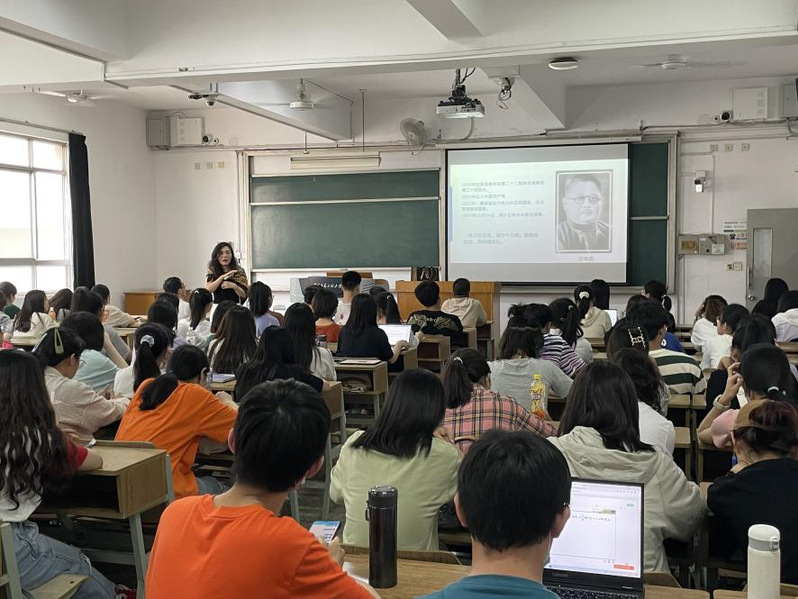 首先,夏海燕围绕“信仰的力量”这一主题,以一张中国共产党创始人的合照为切入点,将共产党创始人的信仰故事娓娓道来,并从他们不同的人生经历中,提炼出属于他们的信仰力量。接着,夏海燕详细又生动地讲述了伟大思想家马克思的一生,从优渥的家庭环境到忠贞不渝的夫妻之情,在他传奇的一生中,是坚定的信仰成就了他的伟大与不朽。随后,夏海燕向同学们讲述了抗日英雄吉鸿昌和红军万里长征的故事,希望通过英雄前辈们的事迹帮助同学们感受到信仰的重要性,认识到信仰可以让前行的脚步更加坚定。最后,她通过人均GDP的对比、世界五百强企业的数量到群众消费水平的提高,让同学们对中国共产党领导下经济建设取得的成就以及人民生活水平的提高有了更深刻的认识。