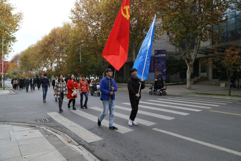 11月23日,我院教工于西苑阅江楼底集合出发,沿既定路线绕校园步行一周。党旗、院旗随风飘扬,教工们迈着矫健的步伐一路前行。健步走途中,教师们昂首阔步、意气风发,形成了秋日的一道亮丽风景线。