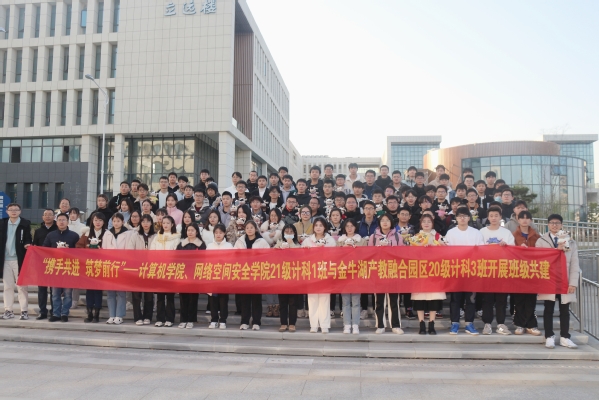 为创新人才培育模式,12月2日下午,计算机学院、网络空间安全学院21级计科1班前往校金牛湖产教融合园区与20级计科3班开展班级共建活动。计算机学院、网络空间安全学院党委副书记、副院长朱文镇,金牛湖产教融合园区党委副书记、副主任章胜,学生事务部主任王雅琴出席,教学事务部朱恩涛、实验中心徐冬冬、相关辅导员及两个班的同学参加了此次活动。