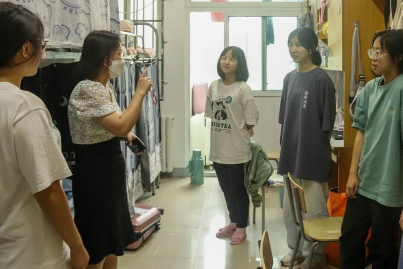 在硕园5栋女生宿舍,成芳主动和学生话起家常。“来自哪里?住的还舒适吗?吃的还习惯吗?有问题积极和我们沟通!”一句句关心问候,迅速拉近师生之间的情感距离。她还嘱托新生,要严格遵守学校疫情防控政策,保持良好习惯,刻苦学习。孙英男主动询问同学们是否有生活上的困难,积极指导同学们解决生活中的问题。来到了沁园22栋、22栋及40栋相关男生宿舍,田智详细了解同学们的学习和生活情况,亲切鼓励同学们要相互关爱、相互包容,尽早适应大学的学习和生活。张龙华向同学们强调寝室安全及防诈反诈知识。走访慰问的同时,学院给每个宿舍成员送上了印有学院院徽的校园卡卡套及多样励志类、科学类和文学类书籍。学院希望同学们在学习专业课程之余,能够通过多读一些好书,陶冶情操、开拓视野。鼓励同学们强化宿舍小“家”的沟通联系,通过宿舍之间的“图书漂流”活动,不断增进同学之间的感情,增强班集体和年级间的凝聚力。