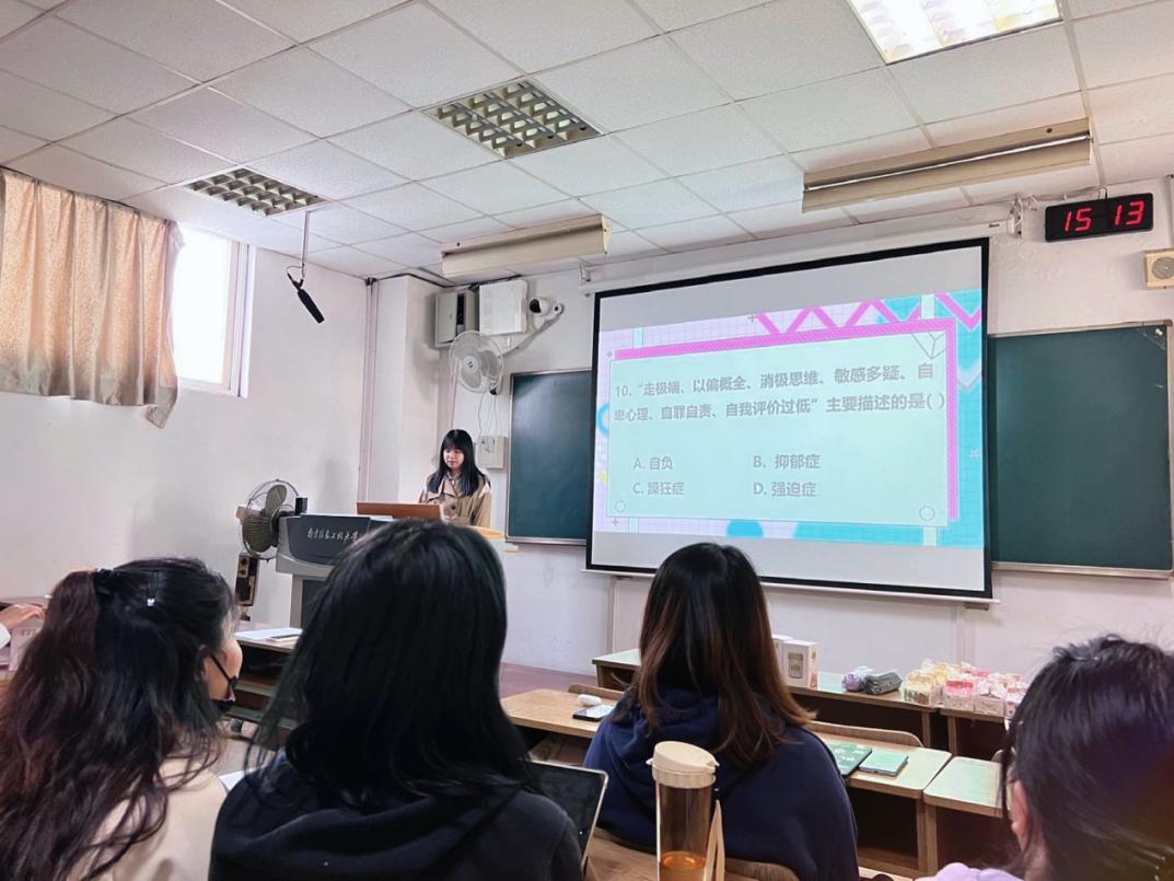 影片结束后,同学们互相交流心得,现场气氛热烈。文研会随即开展了心理知识问答活动,考察大家对心理健康知识的熟悉程度。同学们收获了心理健康的相关知识,也越发熟悉学校心理健康帮扶措施。文研会向胜出小组颁发了奖品。活动最后,担任主持人的文研会活动与实践部部长林亚楠同学做了总结,她表示,希望大家继续关注“文学院研究生心理健康月”的后续活动,在日常生活中提高对心理健康的重视。