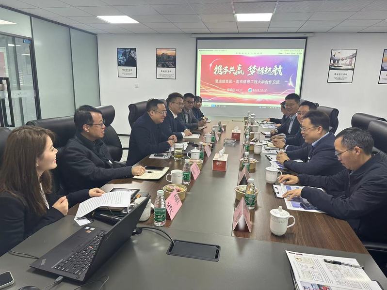 屈家安对爱迪信集团的邀请表示感谢,并从学校概况、院史院情、专业设置、学科发展、师资队伍、科学研究、平台建设以及人才培养等方面进行详细介绍。他指出,南信大是一所有温度、有担当的“硬核”大学,学校始终坚持开放发展的理念,借助社会力量办好大学,融合多方优质资源,促进产、学、研深度融合,学校和学院高度重视院企合作共建,期待与爱迪信集团在资源共享、人才培养、科学研究、党建共建特别是学生就业等方面展开深度交流合作。