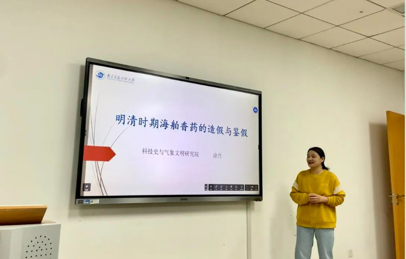 11月25日下午,法政学院第五十一期“天哲”学术沙龙在阅江楼118科技史与气象文明研究院学术报告厅举行,涂丹老师做了“明清时期海舶香药的造假与鉴假”的报告,研究院教师、博硕研究生30多人参加。