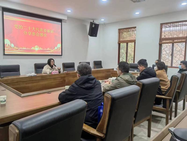 参观结束后,学院党委特邀党的二十大代表、淳安县枫树岭镇下姜村党总支书记、村委会主任姜丽娟为学院党委一行作党的二十大精神学习分享报告。作为“党代表通道”的采访对象,姜丽娟分享了亲历大会的感悟。她结合下姜村从“穷山沟”到“绿富美”的蝶变历程,从党的二十大报告中“中国式现代化”“全面推进乡村振兴”“人民就是江山,江山就是人民”三个关键词出发,为党员们解读报告内涵。同时,她从自己返乡创业的奋斗历程,从青年基层党员干部的角度,勉励广大党员要扛起时代赋予的责任和使命,加强自身能力建设,在广阔的乡村舞台中施展才干,为全面建设社会主义现代化国家贡献青春力量。