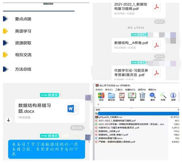 各班同学就目前在居家自主复习中遇到的重点、难点等相关问题展开热烈讨论交流,21信安2班的学委更是帮助同学们总结错题,提供优质学习资料,无私分享自己在学习中的心得体会,极大程度的提高了同学们居家学习的效率。