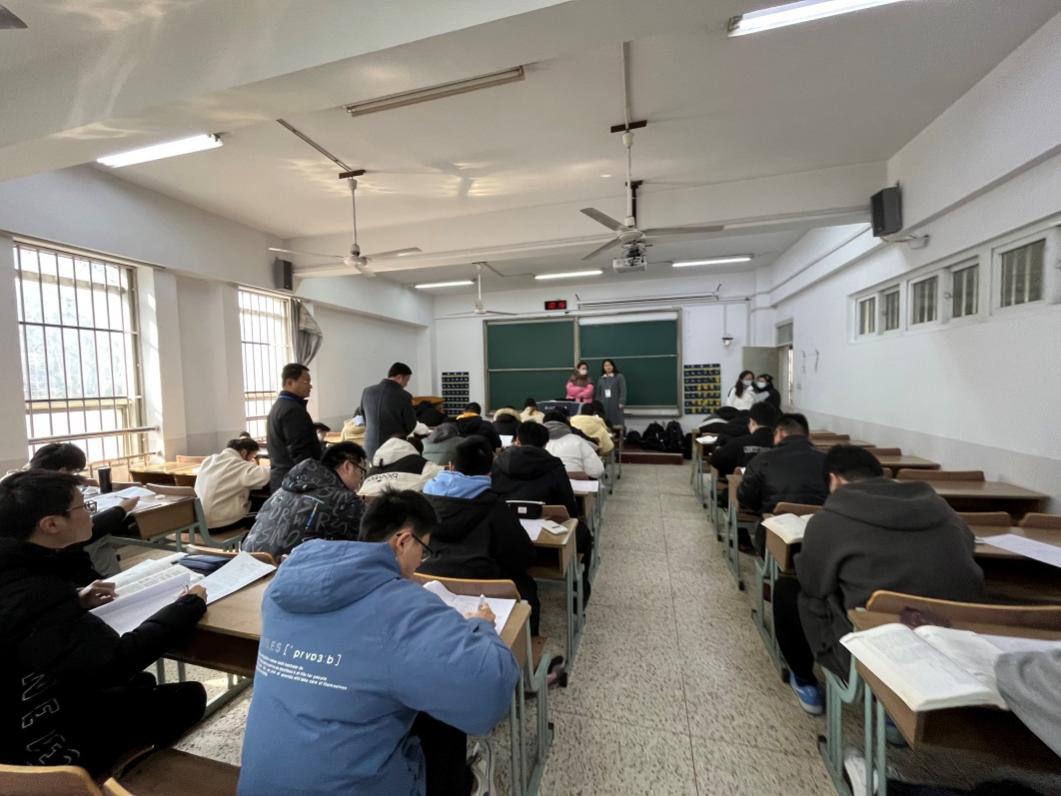 第一周考试期间,学院领导、教学秘书、辅导员先后深入教室进行巡考,2月16日上午由学院党委书记杨春艳,副书记兼副院长孙加兴、副院长李敬发等一行深入各考场进行巡考。考场上,监考教师认真履行监考职责,工作细致严谨;学生严格遵守考试规则,考场秩序井然。