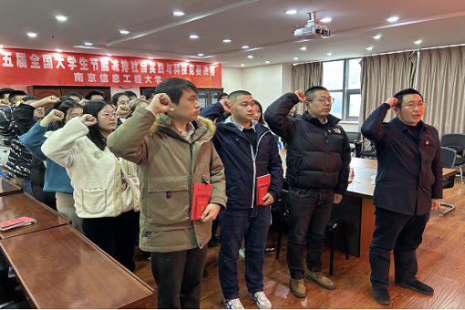 大会开始,全体起立,奏国际歌。随后,屈家安宣读22名新发展预备党员名单。屈家安与蔡炜分别为新党员佩戴党徽,并发放《党章》《组织生活手册》与《党员学习记录本》。之后,参加宣誓的预备党员在屈家安同志的带领下到台前列队,面向党旗,举右手握拳过肩进行庄严的入党宣誓。宣誓完毕后,教师党员代表李冬和学生党员代表付文星分别发言,立志在今后学习与工作中增强责任感与使命感,展示教师与新时代青年的良好新形象,做一名优秀的共产党员。