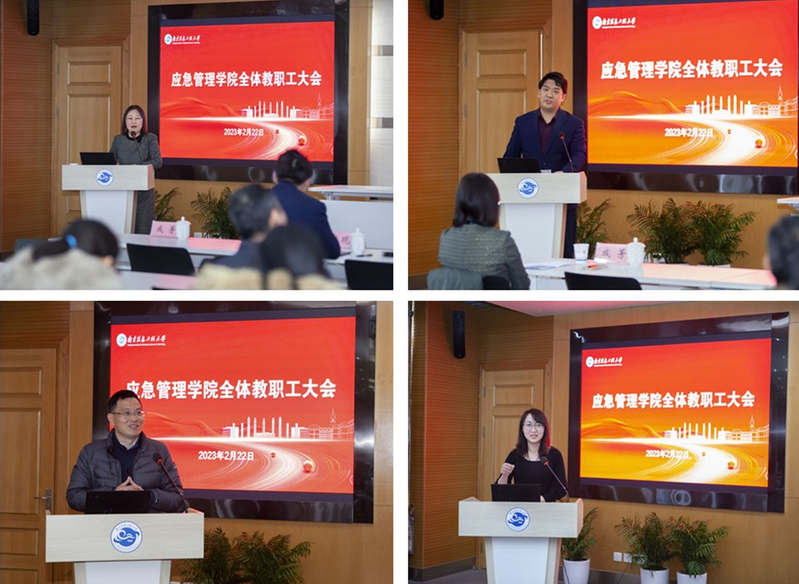 2月22日,应急管理学院在图书馆报告厅召开全院教职工大会,学院党委书记成芳、副院长孟现勇、副书记兼副院长徐海波、副院长顾湘以及学院全体教职工参会,会议由院党委书记成芳主持。