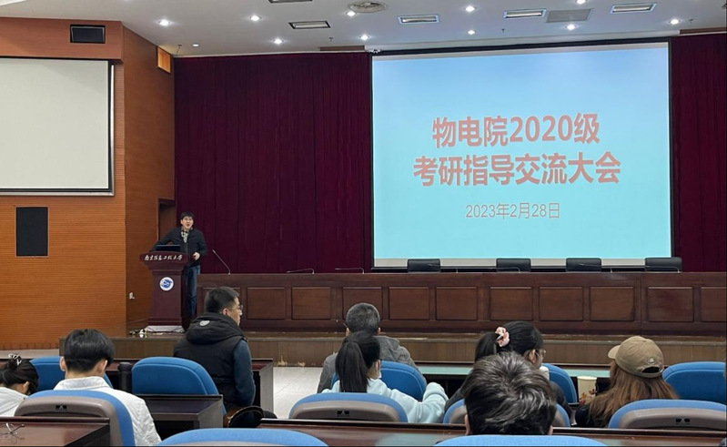 为更好帮助学院学生备考硕士研究生,营造奋发向上的学习氛围,近日,物电院在气象楼报告厅召开2020级学生考研指导交流大会。学院副院长赖敏作考研指导经验分享,学院党委副书记兼副院长田智出席会议,学院2020级全体本科生参加了大会。大会由学院团委书记张龙华主持。