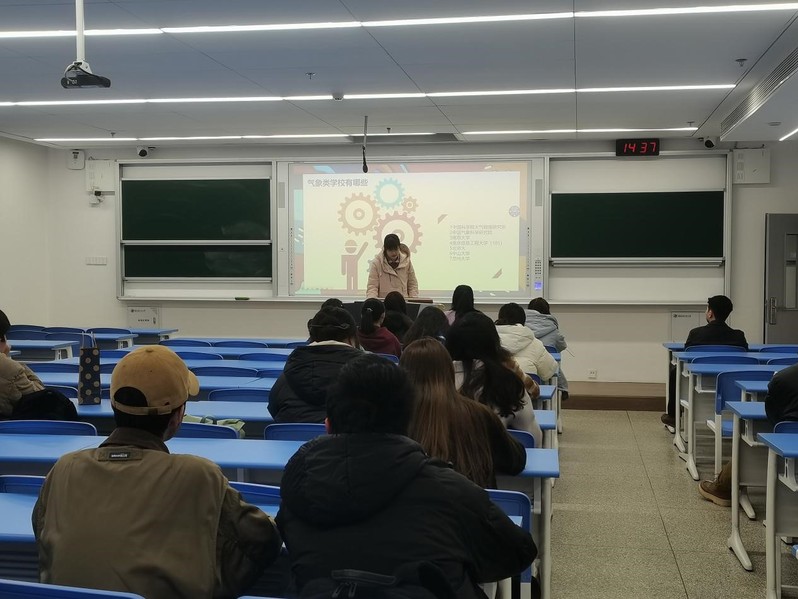 活动开始,班长胡可柔作为班委代表,感谢班级同学上学期对班委工作的支持,在大家的努力下,班级学风良好,今后也将继续努力为大家做好服务工作。接着,邓雅歆总结班级同学历年所修课程学分、科创竞赛获奖和等级考试通过率等情况,帮助班级同学根据自身实际制定未来学习计划。针对班级中大部分同学选择考研这一现状,邓雅歆还向大家推荐了自己收集并整理的各学科学习资料等,为正在备考的同学提供了优质的学习资源。最后,班主任陈国森老师向同学们分享了气象类考研院校,并且建议同学们在备考期间按照“有目标、定计划、认真执行”三步走。他还鼓励同学们在考研路上应该勇敢的面对挫折、积极的解决困难,在追求成功的同时培养个人坚毅的品格。