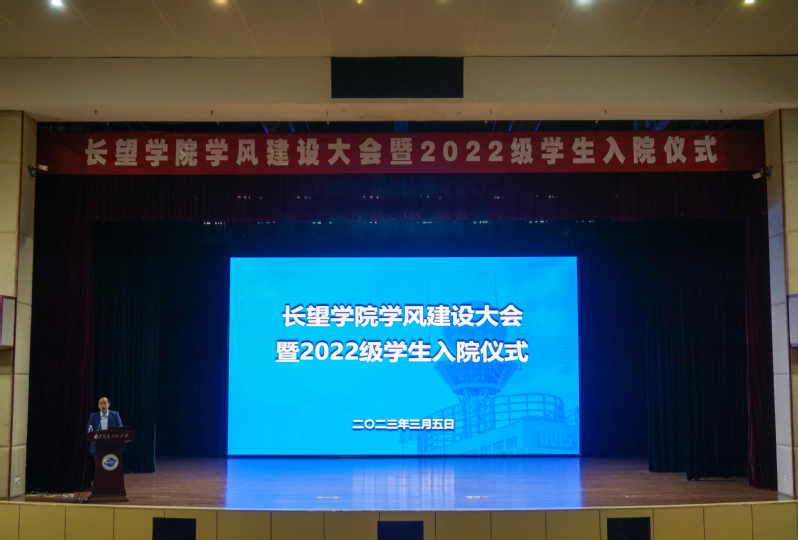 冬去春来万象新。3月5日上午,长望学院学风建设大会暨2022级学生入院仪式在大学生活动中心小剧场隆重举行。长望学院党委书记文亚平、常务副院长周宏仓、党委副书记、副院长王康宏、副院长(挂职)王志雄,学院全体教职工,2022级全体学生参加了仪式,本次活动还特别邀请了应用气象学院副院长肖薇教授出席。仪式由王康宏主持。