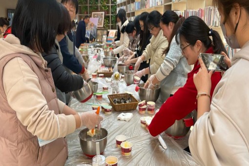 学院工会在誌四季书店分别开展了水果蛋糕DIY、手工饼干DIY、数字肌理画DIY制作。本次活动也特别邀请了专业烘焙师对烘焙制作全过程进行指导,从原料选取、成分配比到烘焙时间等方面为学院女老师细心讲解。老师们在制作过程中相互学习相互帮助,兴趣盎然,经过2个小时的学习,制作出了形状各异、口感美味的小饼干和水果蛋糕,现场弥漫着快乐和幸福的味道,各位老师一边分享品尝自己制作的点心,一边交流,欢声笑语洋溢着整个活动现场。