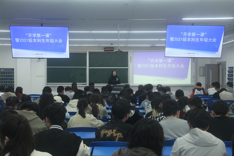 3月7日下午,2021级本科生学风教育大会在明德楼N401召开。首先,涂皛星总结了同学们入学以来一年半的学习情况,指出同学们存在的问题,并结合优秀学长学姐的经历,勉励大二同学们珍惜时间、端正学风、确立目标、锐意进取,结合自身实际恰当规划,实现个人的全面发展。随后,涂皛星简要介绍了地科院考研就业的基本情况,并指出如今考研已成为大势所趋,同学们应当积极关注考研现状、提前做好职业规划,在提高学习成绩的同时,主动提升自己的科研创新和社会实践能力,不断增强个人核心竞争力,时刻做好迎接未来挑战的准备。