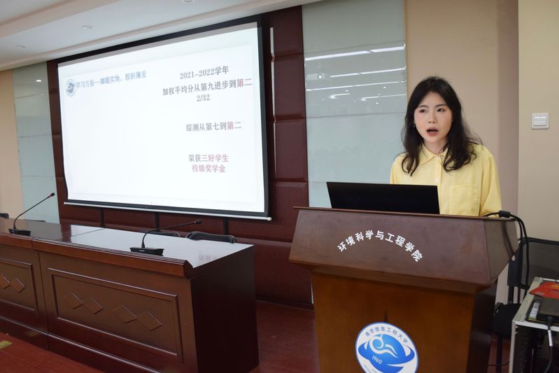 为汲取榜样力量,发挥优秀学子的示范引领作用,树立优良学风,营造勤奋好学的良好氛围,充分挖掘资助政策的育人功能,3月8日下午,环境科学与工程学院于学科一号楼N201召开“心怀感恩,励志成才”优秀受助学子事迹报告会。会议分别邀请环科院2020级和2019级国家励志奖学金获得者赖俊蓓和张宸僖作为嘉宾,分享个人成长历程,环科院全体家庭经济困难生参会。