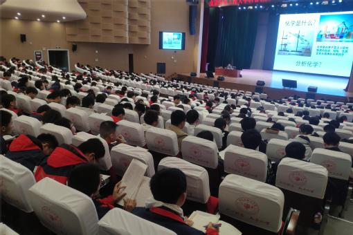 在两所生源地基地中学,化材院策划举办了学科与生活系列科普讲座,讲座分别由兴化楚水中学副校长宗汉、兴化中学副校长金红兵主持。化材院韦松博士以《化学与现代医药》为主题,进行了科普知识讲座。韦老师用深入浅出的语言向同学们科普了化学在现代医药生产中的妙用,包括抗酸药、抗菌药、解热镇痛药、抗生素、维生素、抗癌药以及纳米科技在现代医药中的应用,深入浅出地讲解了如何利用简单的化学知识制备靶向药物,提高药物疗效。陆海杰老师为学生带去了主题为《生活中的分析化学》的科普知识讲座,陆老师从环境污染分析、食品安全分析以及即时传感分析等三个角度,详细地为同学们解读了分析化学与生活之间的密切联系,用生动形象、幽默风趣的语言点燃了现场同学们的热情,更在同学们心中种下一颗化学科学的种子。本次科普讲座拓展了同学们的视野,激发了同学们努力学习科学文化知识的热情,在场学生对物理学科、材料学科以及化学学科产生了浓厚兴趣,立志要打好基础,好好学习,勇攀科学高峰。