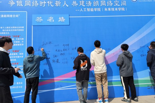 学院发放了《争做网络时代新人 共建清朗网络空间》倡议书,同学们纷纷在倡议书上签名,表示要积极学习基本的法律知识,贯彻党的二十大精神,树立社会主义核心价值观,文明上网,理性发言,传承健康的网络文化,传递正能量,弘扬时代新风,共建网络文明。