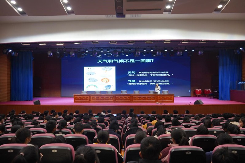曹洁围绕“看云识天气—破译天气密码,订制私人天气预报”为主题,面向江苏省滨海中学共计1600余名高中生开展科普讲座。她结合天气谚语,带领高中学生看云识天气;结合高中知识,通俗易懂地解释天气现象;结合学科发展,不断激发同学们对大气科学的兴趣。科普讲座内容丰富、言语风趣,现场互动热烈,同学收获颇丰。