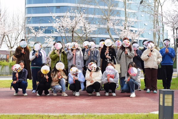 活动现场,洁白的团扇的五彩的干花团经由同学们的巧妙构思与劳动实践,展现出不同的审美与内心世界。制作结束后,同学们带着自己亲手设计制作的精美干花团扇,来到校园内樱花林里拍照留念,大家一同感受着春天的气息,记住这一瞬的美好。