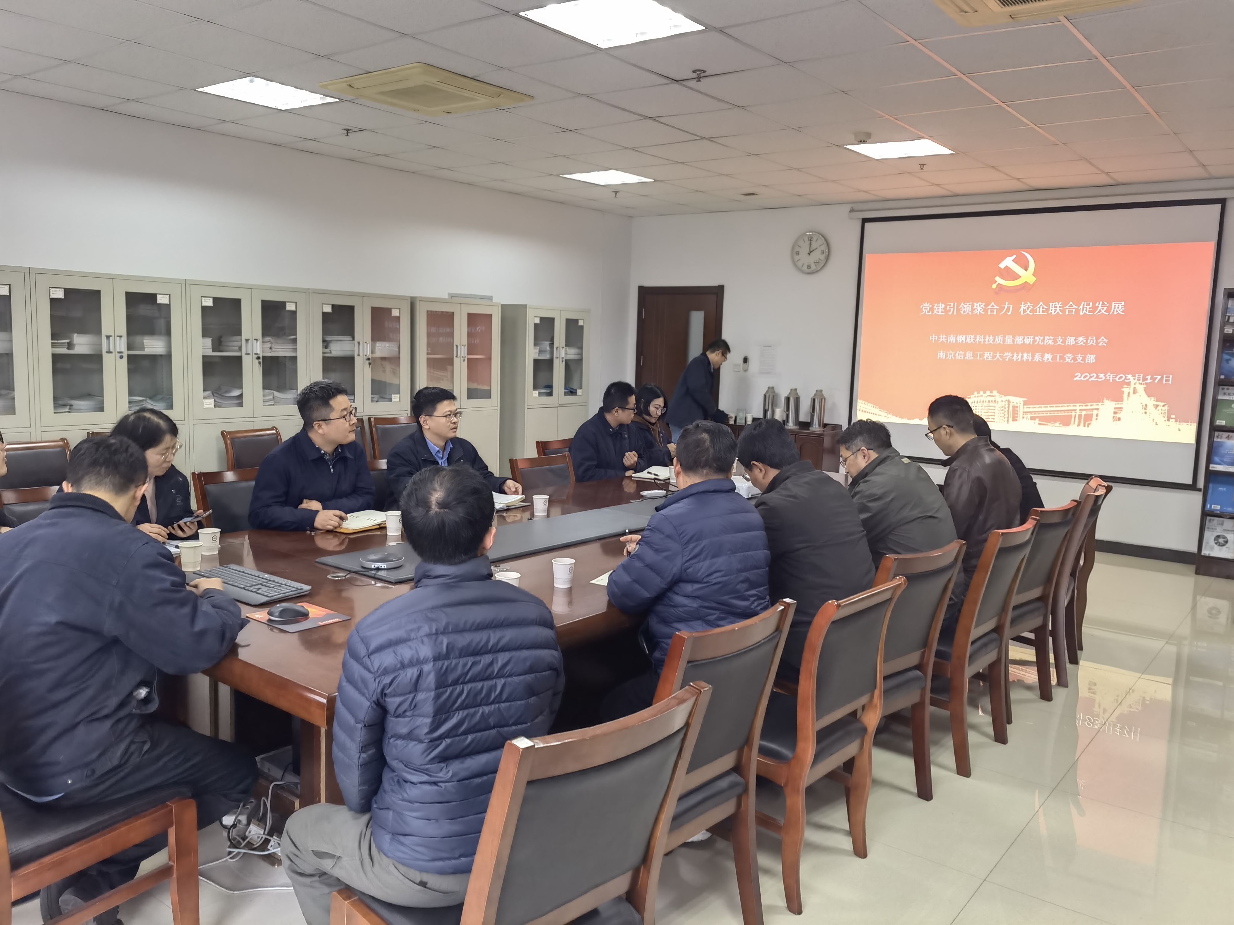 会上,南钢科技质量部研究院党支部书记范益、材料系教工党支部书记姚义俊分别代表双方介绍了支部的总体情况、研究领域及取得的成果。在深入了解企业产业发展方向和技术需求、学校研究特色及优势领域的基础上,双方积极探讨了在人才培养、科技创新等方面的合作领域和合作模式,就借助企业的产业优势,拓宽教师学术应用平台,提升教师科研水平和人才培养质量,借助高校科技人才优势,提升企业自主创新能力等方面开展了详细讨论。会上,双方一致认为可以通过整合同类资源,共享经验、共用资源、共办活动,实现优势互补、良性互动、同频共振。