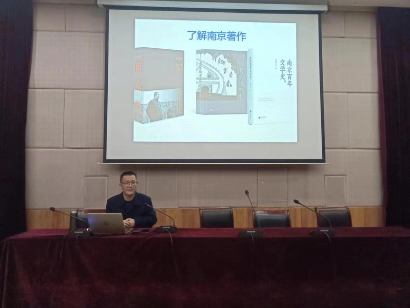 讲座伊始,张守涛以他指导的关于南京文脉的大创项目为切入点,讲述他眼中的“文学之都”南京。张守涛通过竺可桢、范旭东、鲁迅等名人事例,讲述他们在南京生活、学习、工作之事,还结合自身对于南京文化底蕴的研究,带领大家领略南京历史文化名域风采。在讲解中,张守涛提到了“藕舫”(竺可桢的字),鲜明体现了我校对竺可桢先生气象事业的三大传承——学科一脉相传、师资衣钵相传、精神薪火相传。对于范旭东实业成就的分析,同学们对学校周边的纪念馆、遗址有了更深入的了解。而鲁迅在南京的读书经历,则让同学们感受到南京教育历史的悠长。