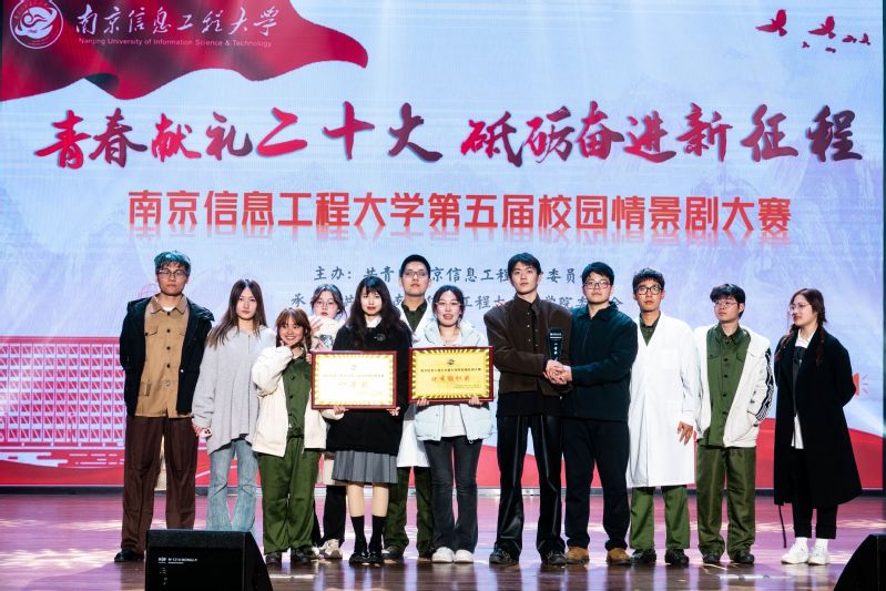 青春献礼二十大,砥砺奋进新征程。3月18日晚,南京信息工程大学第五届校园情景剧大赛在大学生活动中心小剧场顺利举行。此次大赛中,艺术学院选送的情景剧作品《心至苍穹外,暮尽星河远》经历了几个月的训练和打磨,最终荣获第五届校园情景剧大赛一等奖,学院获评优秀组织奖。