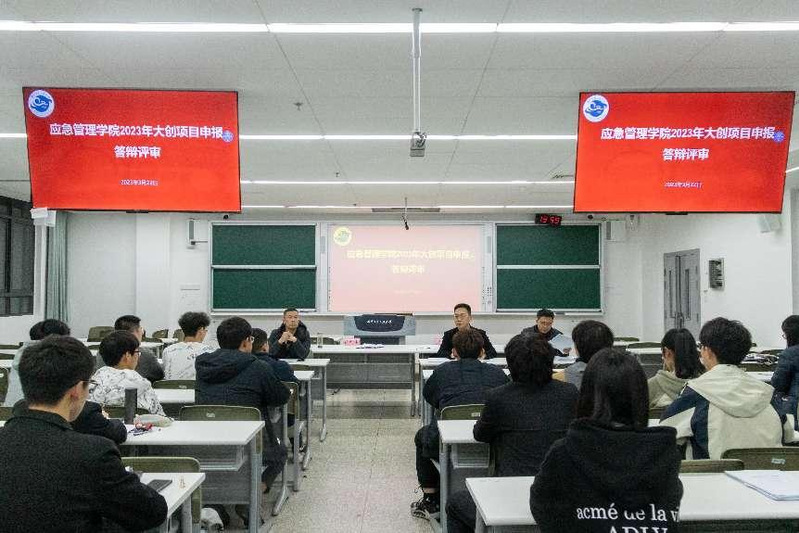 为加强学生对大学生创新创业训练计划项目的了解,提高学院大创项目的申报质量,2023年3月22日晚上,应急管理学院在明德楼S301组织举行2023年校级大创项目申报答辩评审会。此次评审会邀请藕舫学院副院长王兴、计算机学院党委副书记朱文镇、教务处创新创业教育中心主任任团伟担任评审专家,会议由应急管理学院院长助理王金虎教授主持。