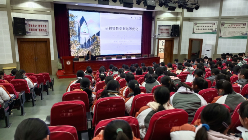 在高邮中学,身为邮中08届毕业生的贾泽慧副教授重回母校,为全体高一的学弟学妹们送上了《从初等数学到运筹优化》的精彩科普讲座。讲座从初等数学中的优化问题出发,引入优化的定义及发展历史,并结合诸多实际场景,如人脸识别、推荐系统等,讲述优化在生活中的应用。本次科普讲座内容丰富,现场气氛热烈,引导同学们用数学思维去观察生活中的现象,激发了高中生学习数学的热情。
