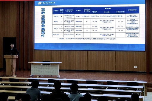 邵福生围绕“‘互联网+’大赛是什么、为什么要参加、怎么准备”三方面展开说明。首先,他从赛事简介、可报名赛道、参赛类型及条件、时间安排、项目来源、奖励政策等方面做了介绍,强调“互联网+”大赛作为全国高校学科竞赛排行榜首位的比赛,是检验高等教育教学改革和科技创新发展的重要平台,是学生培养的重要环节。他勉励同学们,奋斗是青年学生应有的靓丽底色,通过竞赛可以了解自我与社会、激发个人潜能,提升自我综合素养,积极参加科研竞赛是大学生立德成人、立志成才过程中的应有之义。最后,他结合“全国大学生创业服务网”和“中国高校众创空间联盟”两个网站上的相关资料,为在场同学就如何确定市场机会、如何组建团队等方面进行了指导,并鼓励大家找准方向、主动参与,有始有终地完成比赛。