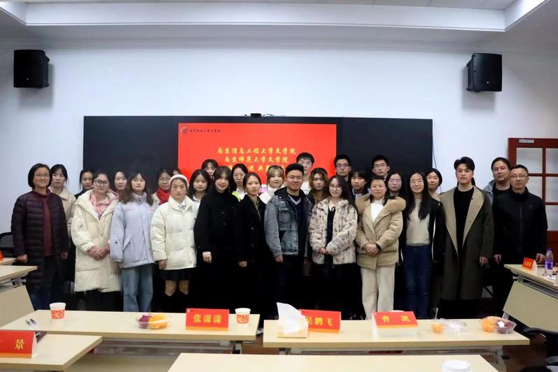 为进一步推进学院团学组织建设水平和工作质量,提升学生干部综合素质,更好地服务学生成长,文学院于3月24日下午赴南京师范大学文学院开展团学组织交流活动。南京师范大学文学院党委副书记支景、院团委书记曹凯;文学院党委副书记兼副院长吴鹏飞、院团委书记张潇潇,以及两院团学组织负责人与骨干参加了交流活动。