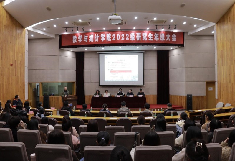 为进一步贯彻党的二十大精神,落实立德树人根本任务,3月22日,数学与统计学院在长望楼N102报告厅召开了 2022 级研究生年级大会。学院全体院领导、22级研究生导师代表、学办辅导员、22级全体研究生(含博士生)参加会议。会议由院党委书记贾冰主持。