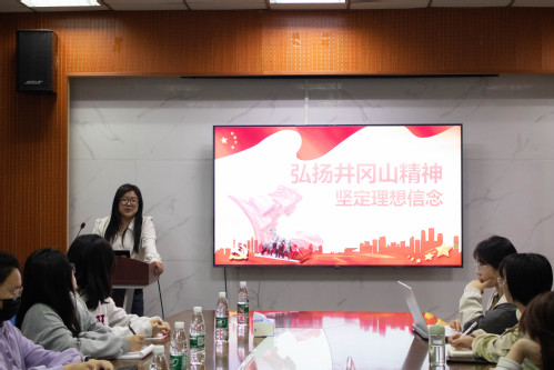 之后汪瑶以“井冈山精神”为主题,向全体学员呈现了“青马工程”第一课的内容,通过观看视频和讲述故事,大家对于井冈山精神的时代背景和科学内涵有了更加深刻的了解,并对井冈山精神的现实意义有了更深层次的思考。最后学员们结合自己的成长经历,分享了对“井冈山精神”的独到体会,表明了传承红色基因、勇担时代使命的决心。