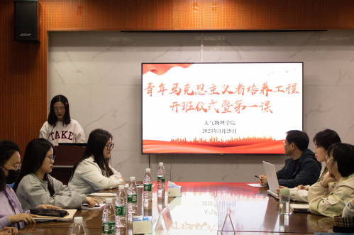 为贯彻落实《关于深入实施青年马克思主义者培养工程的实施意见》,加强青年学生思想政治教育,着力为党培养新时代坚定的马克思主义者,大气物理学院于3月29日在气象楼1115召开2023年度“青马工程”开班仪式暨第一课。院党委副书记、副院长陈建坤,院分团委书记汪瑶,青马工程全体学员参加此次培训,培训由院分团委副书记马欣欣主持。