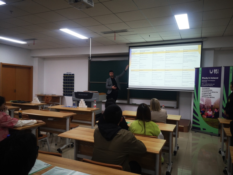 随后,Alan Davy针对中外合作办学开设的五个专业,深入指导同学们如何更好地规划专业学习,讲解了中爱两校共同制定专业课程计划的优势与特色,强调了实践动手能力在工科学习中的重要性。他给同学们讲述了在爱尔兰学习的不同体验,分享了之前通过“3+1”项目赴SETU学习的同学在爱尔兰的学习与生活,他鼓励同学们有机会多参与短期项目、交流访学等方式多出去长见识、拓视野,体验不同的教育。