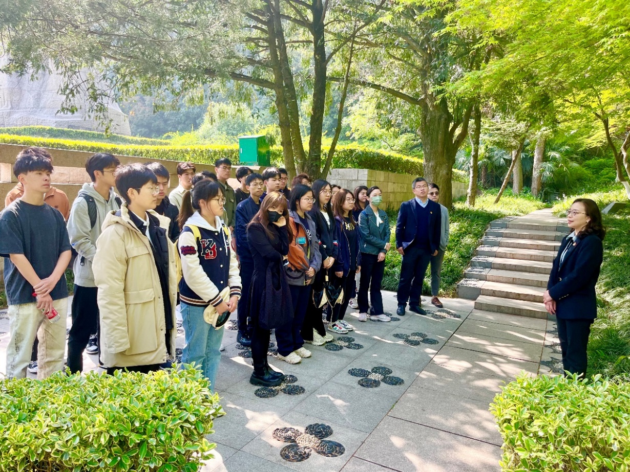 在雨花台烈士陵园,沃特福德学院党总支副书记(主持工作)丁媛媛在北殉难处、丁香树等处,给大家讲授了微党课。在北殉难处教学点,主要介绍了北殉难处的历史和烈士群雕的设计内涵等内容,重点讲述了烈士在面对死亡时的英勇态度和无畏选择;在永不凋谢的丁香教学点,讲述了雨花英烈丁香及其丈夫阿乐执着革命,执着爱情,坚守信仰的故事。通过她生动、深情地讲述,让在场师生深刻领会到了雨花英烈崇高理想信念、高尚道德情操、为民牺牲的大无畏精神。