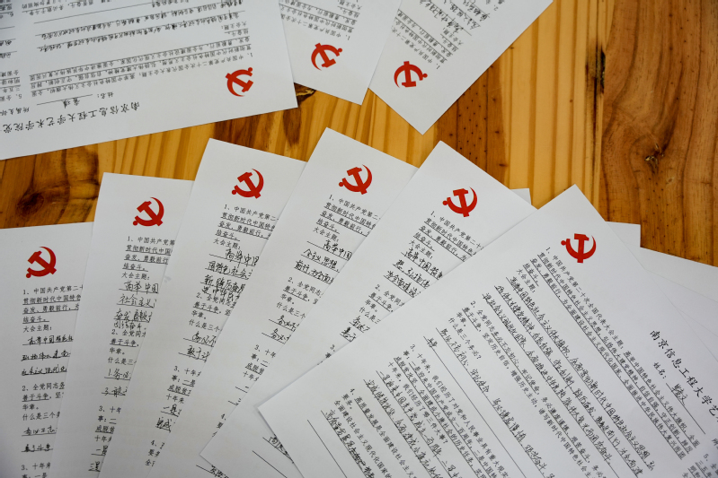 比赛期间,艺术学院师生党员一丝不苟地伏案书写,字里行间洋溢着对党和祖国的热爱之情。在答题过程中,思索回顾党的二十大报告的重要内容,在思想上接受新的洗礼。一张张字迹工整的答卷呈现在大家面前,犹如一颗颗爱党之心跃然纸上。