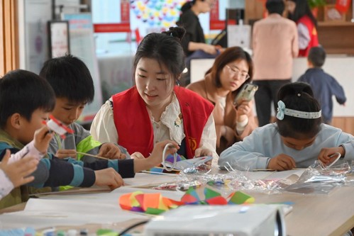 活动开始,志愿者们通过讲述晋文公重耳以及仓颉的故事,引出了清明和谷雨节气的由来。小朋友们在听故事学气象的同时学习了传统古诗词,增加了文化素养。接着志愿者播放了红色电影片段,其中革命先烈可歌可泣的事迹,引导小朋友增强了爱国情感。最后志愿者带领小朋友们通过“扎”“糊”“绘”等步骤手工制作了绘有各色图案的风筝,并向小朋友科普了放飞风筝的过程中风的作用、气流的影响等知识。