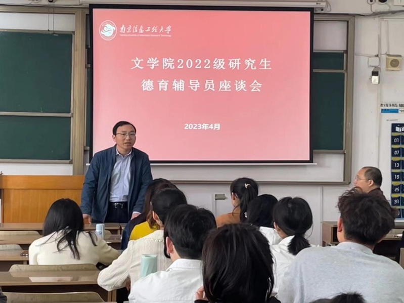 4月21日上午,文学院2022级研究生德育辅导员座谈会在文德楼S307顺利举行。2022级研究生德育辅导员文学院党委副书记(主持工作)郭雨、外国语言文学一级学科点负责人陈志杰教授、研究生辅导员邵芳及2022级全体研究生参会。座谈会由研究生辅导员邵芳老师主持。