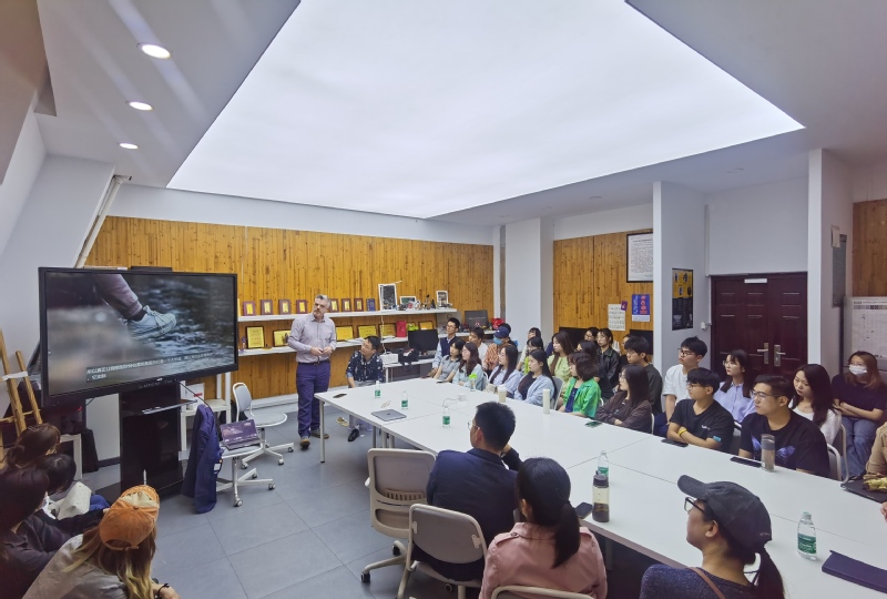 讲座提问环节,几位同学就艺术家职业发展道路、如何看到ChatGPT与艺术创作的关系、海外求学要求等跟Roberts教授进行互动交流。现场气氛活泼,交流互动热烈。