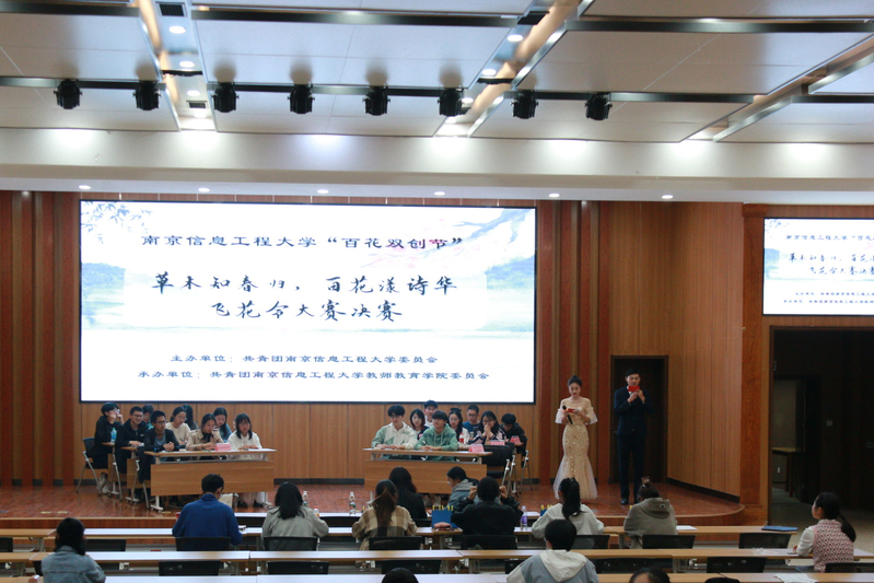 为鼓励我校学子诵读精美诗篇、亲近中华经典、从诗歌中汲取力量,南京信息工程大学开展“百花·双创节”系列活动之“草木知春归,百花漾诗华”飞花令大赛。本次比赛由校团委主办、教师教育学院团委承办,赛程分为初赛、决赛两阶段。