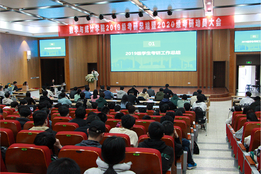 为总结我院2019级学生考研工作,并激发2020级学生的考研热情、增强考研信心、交流考研经验,推进学院学风建设,4月26日晚,数学与统计学院在滨江楼二楼报告厅召开“2019级考研总结暨2020级考研动员大会”。全体院领导、2019级和2020级班主任、全体辅导员,2019级、2020级和2021级部分学生代表参加会议。会议由院党委书记贾冰主持。
