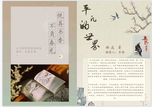 4月23日世界读书日来临之际,大气科学学院本科生第四、九党支部联合开展为期两周的“书香氤氲生活,阅读铸就丰碑”世界读书日系列活动。