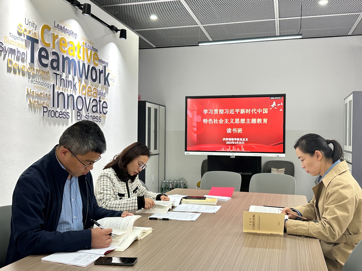 为高标准高质量开展学习贯彻习近平新时代中国特色社会主义思想主题教育,4月25日至5月6日,沃特福德学院先后组织6次中心组集中学习讨论、2次支部党员集体研讨、5次集中线上学习、7次个人自学,学院理论学习中心组成员全程参加集中学习,集中学习系列会议由学院党总支副书记(主持工作)丁媛媛主持。