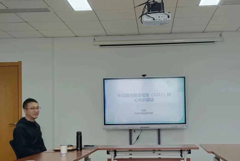 讲座伊始,隋静通过对“益生菌”“益生元”“后生元”等概念的解释及其对人体的积极作用,引出了“‘吃好’对人体健康非常重要”这一观点。他还从“如何吃好”入手,进一步宣传与解读“中国居民膳食指南(2022)”对我们个人保持身体健康有着重要作用。当对“中国居民膳食指南(2022)”进行解读时,隋静主要围绕膳食指南的定义、历史沿革、构成及一般人群膳食指南的平衡膳食八准则等内容细致展开讲述。