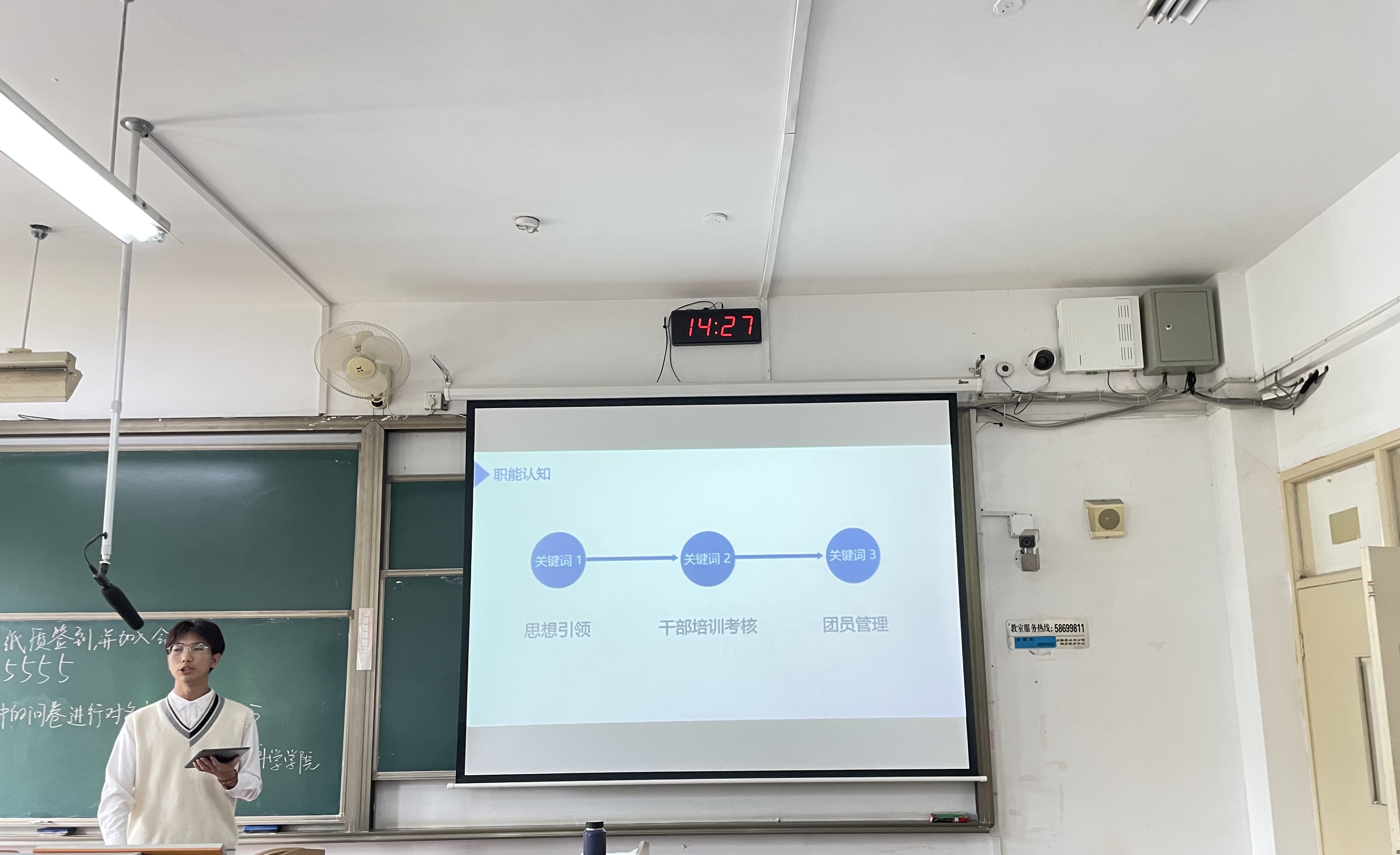 会议主要汇报了各个部门工作开展情况、工作中遇到的困难以及解决方案。会议开始,院学生会主席、分团委副书记、主席助理和各部门部长先后针对工作理念和履职情况做出汇报,然后他们又提出了工作开展中的优点与不足。随后,他们对工作进行了总结反思。评委提出了问题并进行了交流。